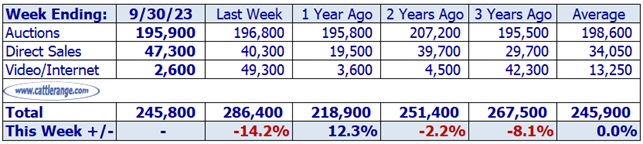 Data released by USDA on 10/2/23 for the week ending 9/30/23...