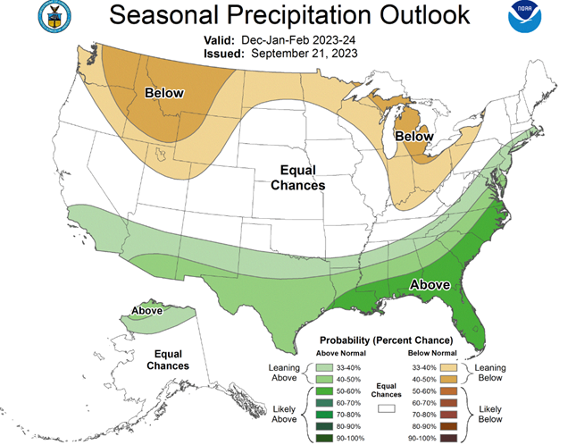 The models also predict that the upcoming winter will bring below-average precipitation to the northern U.S. Much of the Southern U.S., on the other hand, could see a wetter-than-usual winter, NOAA predicts.