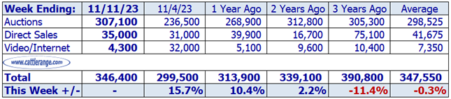 Data released by USDA on 11/13/23 for the week ending 11/11/23...