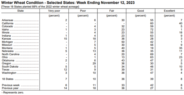 47% of Winter Wheat is in 'Good to Excellent' Condition compared to 50% last week and 32% last year...