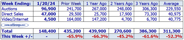 Data released by USDA on 1/16/24 for the week ending 1/13/24...