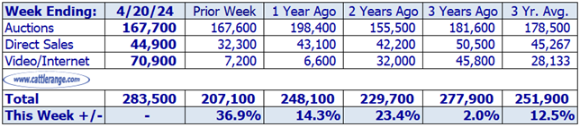 Data released by USDA on 4/22/24 for the week ending 4/20/24...