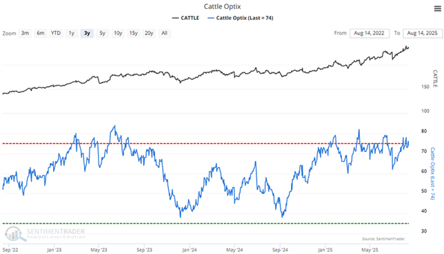 Cattle - 3 Year Chart... Blue line tracks 'Market Sentiment'