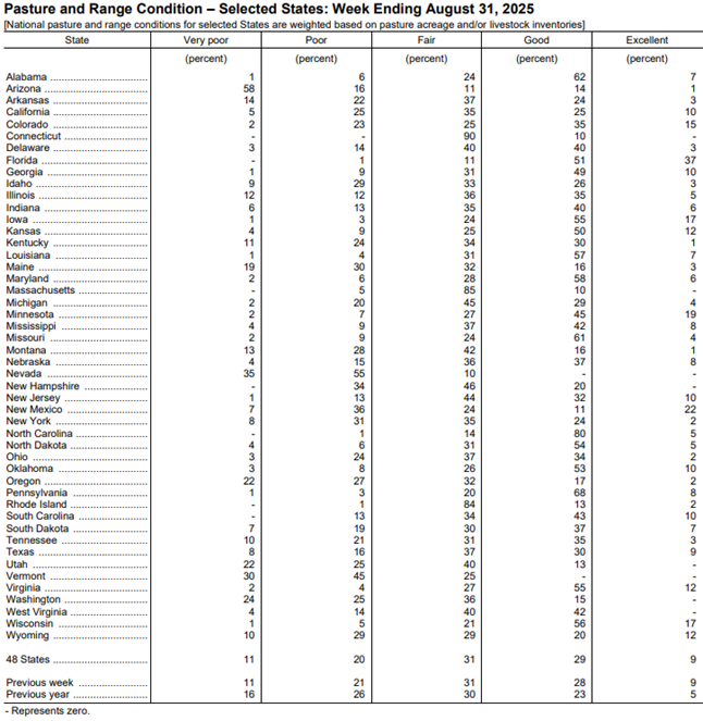 38% of Pasture & Range Conditions rated 'Good to Excellent' compared to 37% Last Week and 28% Last Year.