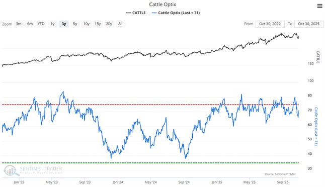 Cattle - 3 Year Chart... Blue line tracks 'Market Sentiment'