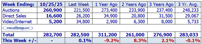 Data released by USDA on 10/27/25 for the week ending 10/25/25...