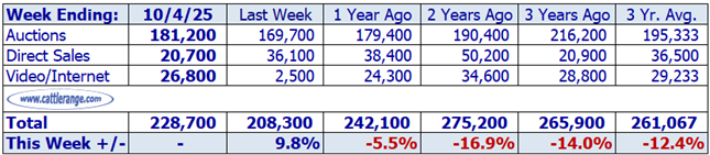 Data released by USDA on 10/6/25 for the week ending 10/4/25...