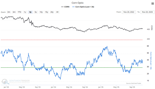 Corn - 3 Year Chart... Blue line tracks 'Market Sentiment'