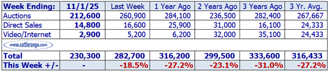 Data released by USDA on 11/3/25 for the week ending 11/1/25...