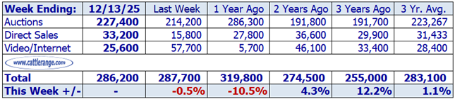 Data released by USDA on 12/15/25 for the week ending 12/13/25...