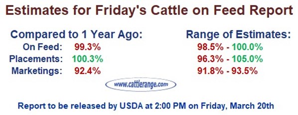 Estimates for the 3/20/26 Cattle on Feed Report
