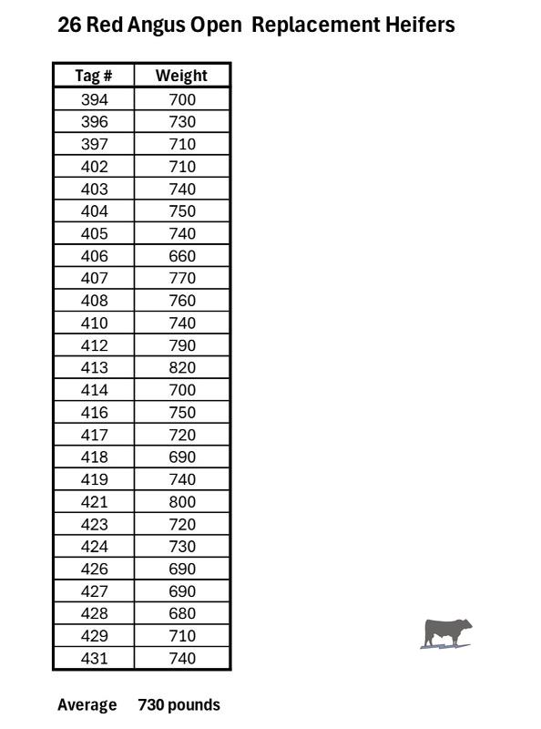 Really nice, all one-raising set of 26 Red Angus Open Replacement Heifers...