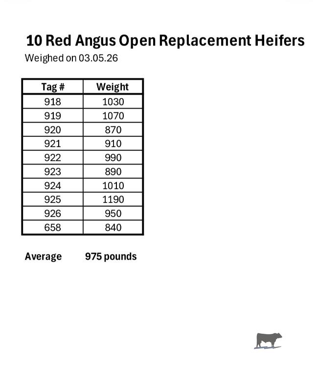 - 10 Red Angus Open Replacement Heifers