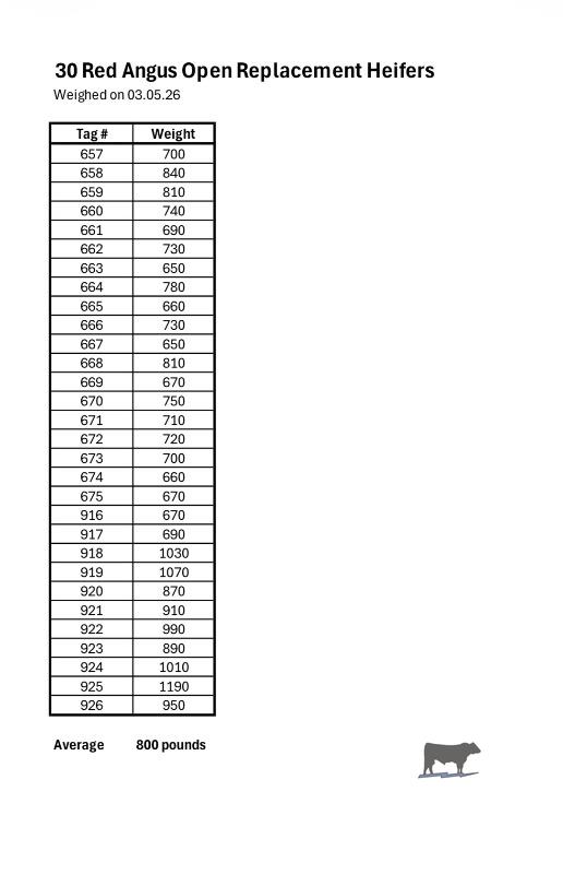 Fancy, all one raising set of 30 Red Angus Open Replacement Heifers...