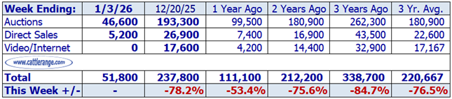 Data released by USDA on 1/5/26 for the week ending 1/3/26
