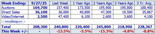 Data released by USDA on 9/29/25 for the week ending 9/27/25