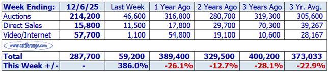 Data released by USDA on 12/8/25 for the week ending 12/6/25