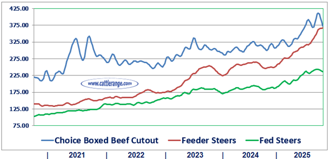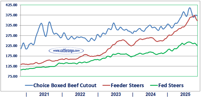Feeder & Fed Steer Prices vs. Choice Boxed Beef Cutout