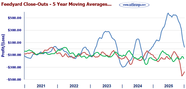 Feedyard Closeouts & Five-Year Moving Averages
