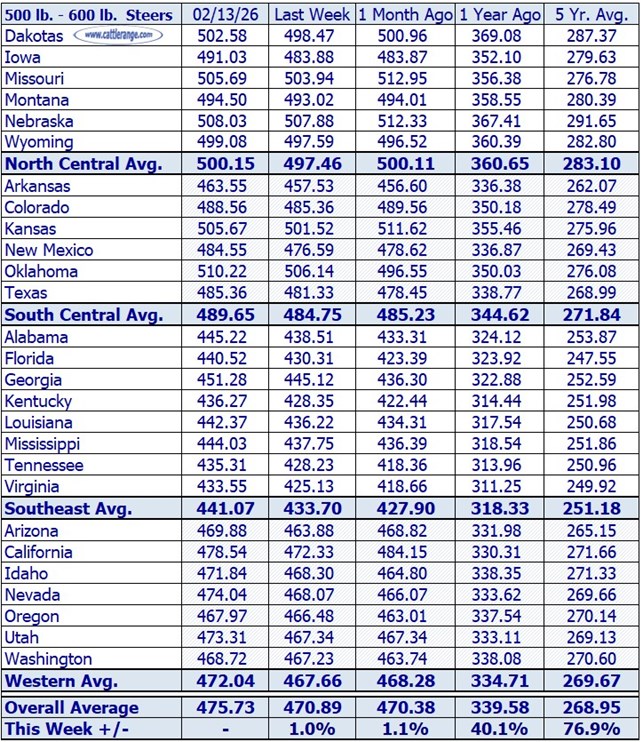 Stocker Steer Prices for the week ending 2/13/26...